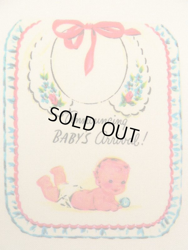 ”announcing BABY'S arrival!”アメリカの赤ちゃんのデザインを生成のシーチングに転写しています。1枚のサイズ約12cmx10cm 柄のサイズ 8.9x7.1cm カルトナージュやパッチワークにいかがですか?額に入れてもおしゃれですね。デザインやメッセージを楽しんでください。