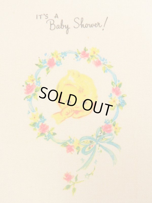 ”It's A Baby Shower!”アメリカの赤ちゃんのデザインを生成のシーチングに転写しています。1枚のサイズ約12cmx10cm 柄のサイズ9x4.9cm カルトナージュやパッチワークにいかがですか?額に入れてもおしゃれですね。デザインやメッセージを楽しんでください。