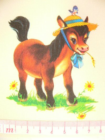 アメリカのアニマルのデザインを生成のシーチングに転写しています。1枚のサイズ約12cmx10cm 柄のサイズ9.1x7.5cm カルトナージュやパッチワークにいかがですか?額に入れてもおしゃれですね。