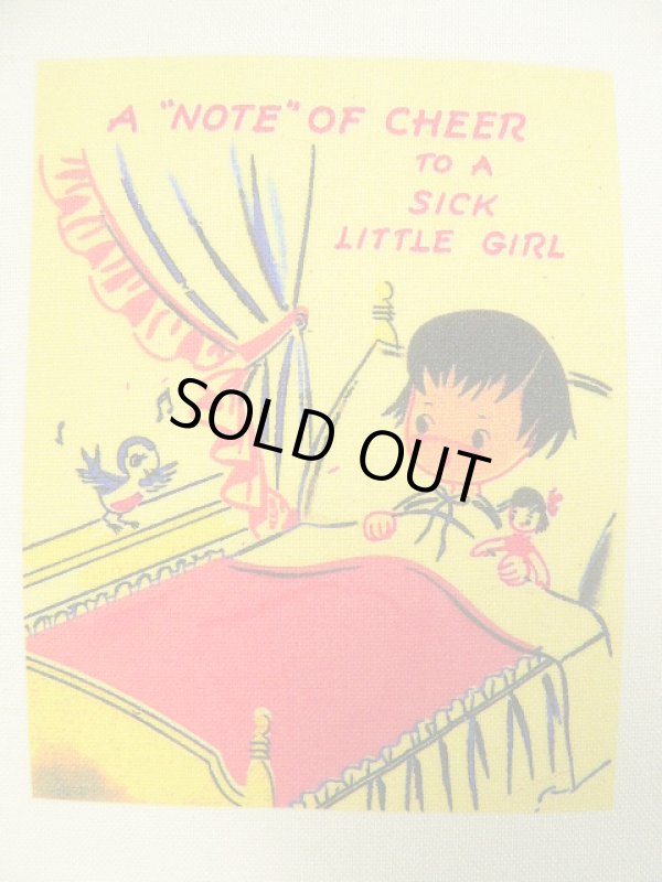 ”A ”NOTE" OF CHEER TO A SICK LITTLE GIRL”アメリカの子供のデザインを生成のシーチングに転写しています。1枚のサイズ約12cmx10cm 柄のサイズ9x6.9cm カルトナージュやパッチワークにいかがですか?額に入れてもおしゃれですね。メッセージやデザインを楽しんでください。