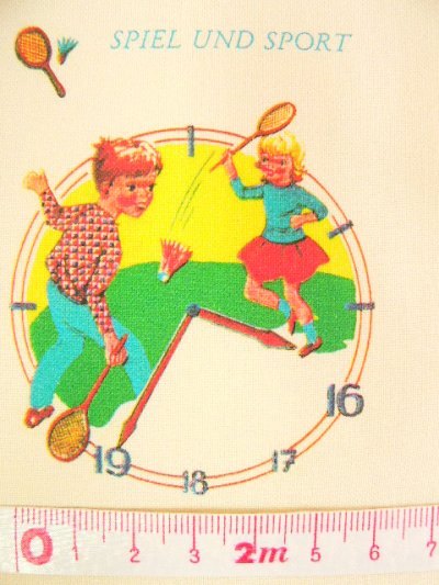 ”SPIEL UND SPORT”ドイツの時計シリーズを生成のシーチングに転写しています。1枚のサイズ約12cmx10cm 柄のサイズ7.8x6cm カルトナージュやパッチワークにいかがですか?額に入れてもおしゃれですね。