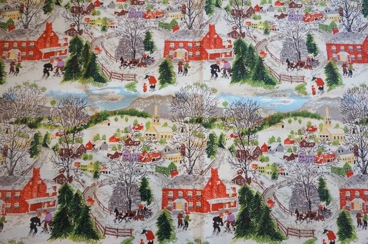 アメリカ・ニューヨークのテキスタイルディーラーの紹介です。 アメリカのフォークアート画家 グランマモーゼス Grandma Moses 『Deep Snow』アメリカ製 ヴィンテージファブリック サイズ58cmx37cm 6シーン入っています。