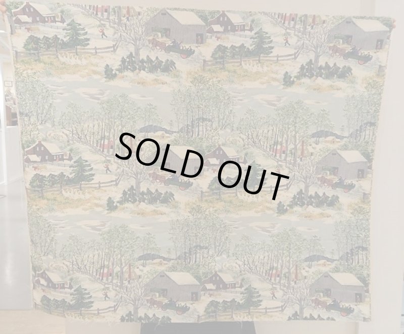 アメリカ・ニューヨークのテキスタイルディーラーから届きました。 アメリカのフォークアート画家 グランマモーゼス Grandma Moses ヴィンテージファブリック バーククロス『Early Spring Time』 サイズ 生地幅119cmx100cm