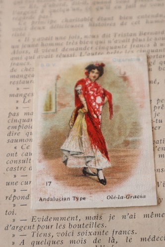 1930年代頃、アメリカやイギリスでは、たばこは貴重で、クロコダイルのバッグより高くて、買える人は、上流階級の人だけでした。だからそのおまけも、高級品が好きな奥様の気に入るものを用意して、プレゼントしていたのです。シルクのリボンに刺繍したもの、シルクリボンだけのもの、それがだんだん紙になりました。(たばこが折れないためでもあったので)そのコレクションをしているコレクターもイギリスを中心にかなりいるようです。いろいろなシリーズになっていて、オールドローズ、乗り物シリーズ、世界の王室シリーズ、ベア、犬、さまざまなシリーズがあり、集めれば、きりがないくらいのコレクションになります。 また、それ専用のアルバムまで売られていました。 なんだか、スタンプブックみたいで、楽しそうですね。 イギリスのミュージアムで、これらのシガレットシルクをポイントにティーコジーを作ったものが展示されていました。