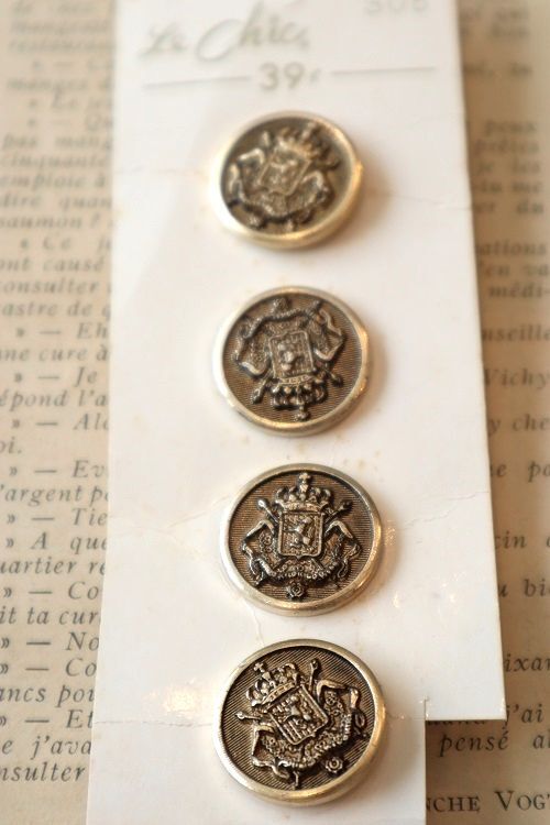アメリカ・ニューヨークのヴィンテージストックです。 アメリカ製ヴィンテージボタン メタル 4個シート付 洋服やバッグなどのアクセントに、また、アクセサリーやスクラップブッキングなどにおすすめです。 サイズ直径1.9cm ヴィンテージなので、組成表示はわかりかねます。