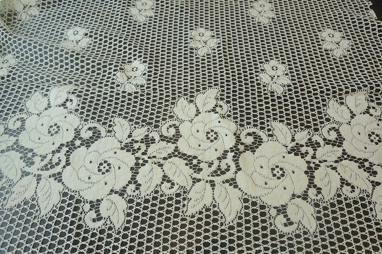 スコットランドから入荷しました。スコットランド製 レース コットン95% ポリエステル5% 生地幅92cm カーテン用にポールを通せるようになっています。50cmからカットいたします。