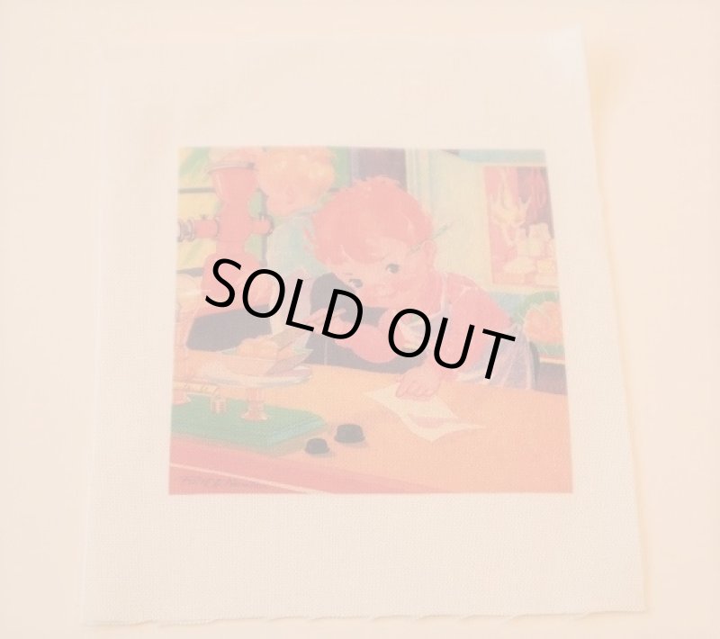 アメリカの子供のデザインを生成のシーチングに転写しています。1枚のサイズ約12cmx10cm 柄のサイズ7.5x7.5cm カルトナージュやパッチワークにいかがですか?額に入れてもおしゃれですね。