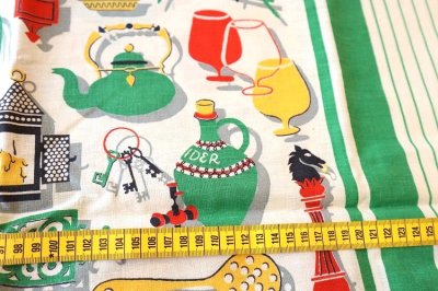 アメリカ・ニューヨークのヴィンテージテキスタイルディーラーの紹介です。アメリカ製ヴィンテージフィードサック キッチン フルサイズ 95cmx48cm 綿100% 数量2でフルサイズです。