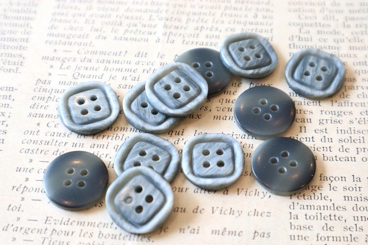 ニューヨークのボタン屋さんのストックです。 フランス製ヴィンテージボタン サイズ1.8cm 1個から販売致します。 表から見るとスクエア、裏から見るとラウンドのとても不思議なデザインです。