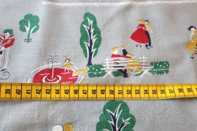 アメリカ・ニューヨークのヴィンテージテキスタイルディーラーの紹介です。アメリカ製ヴィンテージフィードサック 街 綿100% サイズ90cmx55cm 数量2でフルサイズです。