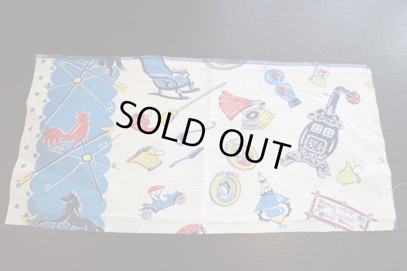 アメリカ・ニューヨークのヴィンテージテキスタイルディーラーの紹介です。アメリカ製ヴィンテージフィードサック キッチン柄 サイズ 45cmx22cm 綿100%