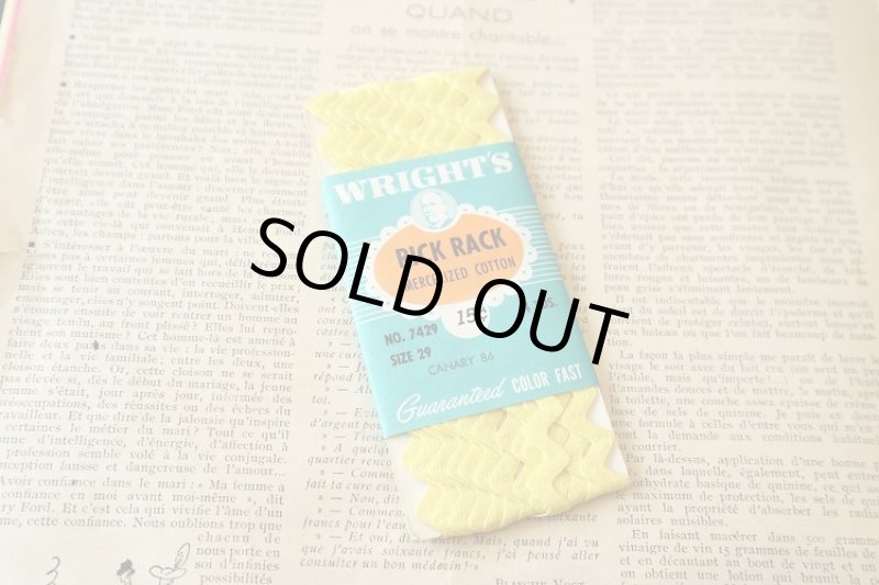 アメリカ・ニューヨークから届きました。アメリカ製ヴィンテージリックラック イエローカラー 4ヤード(約3.6m)入り