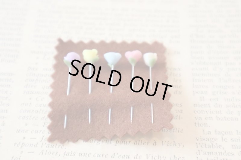 日本の人気雑貨メーカー・オタンジャディスのソーイング雑貨です。人気のローズの形のまち針です。ハンドメイドです。サイズ:約3.6cm 5本セット
