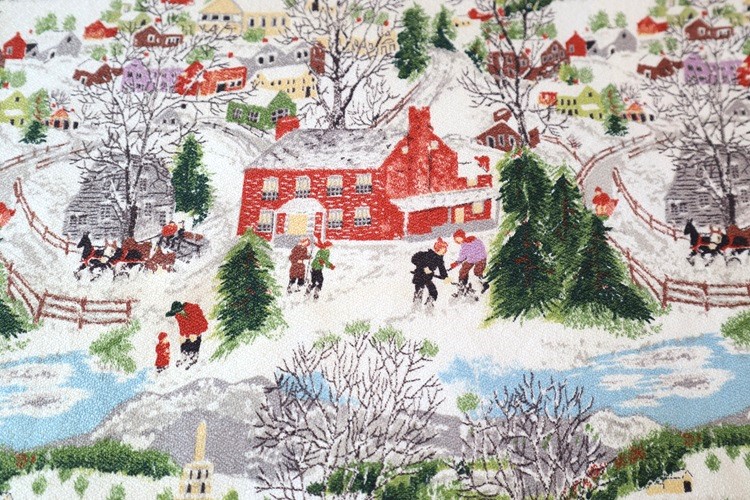アメリカンヴィンテージコレクション アメリカ製 ヴィンテージファブリック 綿100% アメリカのフォークアート画家 グランマモーゼス Grandma Moses 『Deep snow』