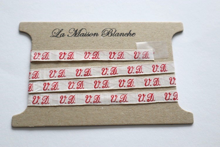 フランス・パリのアンティークディーラーから届きました。フランスのナイティやブラウス、キッチンリネンなどにつけるイニシャルテープです。
