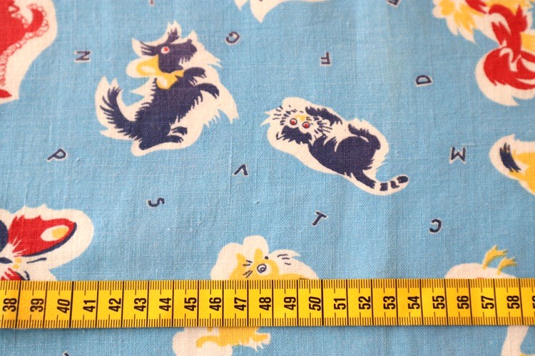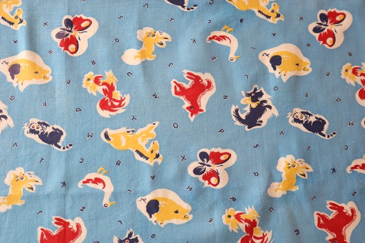 アメリカ製 ヴィンテージフィードサック アルファベットとわんちゃん、ねこちゃん
