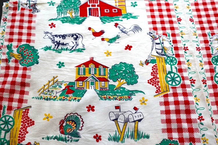 アメリカ製 ヴィンテージフィードサック カントリーシーン