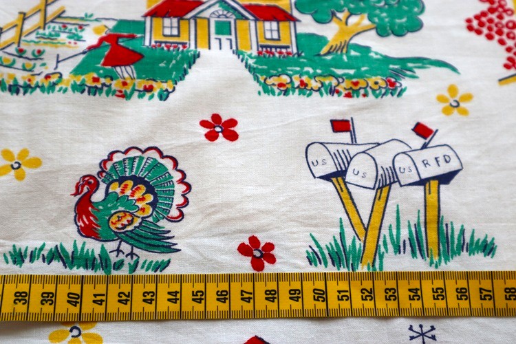アメリカ・ニューヨークのヴィンテージディーラーから届きました。 アメリカ製ヴィンテージフィードサック カントリーシーン
