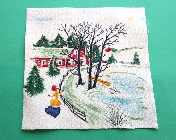 ヴィンテージファブリック バーククロス『Pattern grandma moses tiles』 サイズ14.5cmx14.5cm