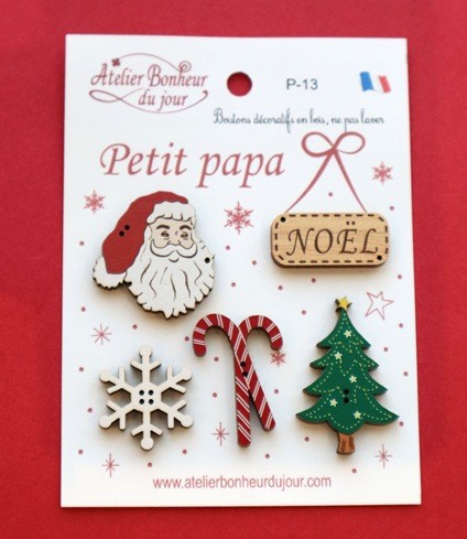 フランス・リヨンのボタン工房のボタンです。 Atelier Bonheur du jour フランス製木製ボタン。 サンタクロース プティパパ