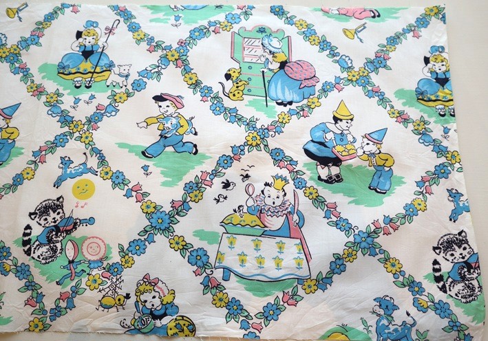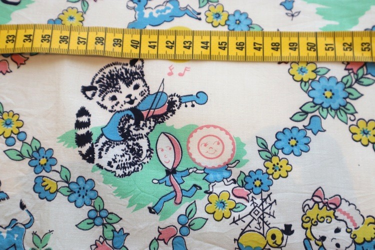 ヴィンテージファブリックディーラーからの紹介です。 アメリカ製ヴィンテージファブリック 1950年代 ナーサリーライム 綿100%