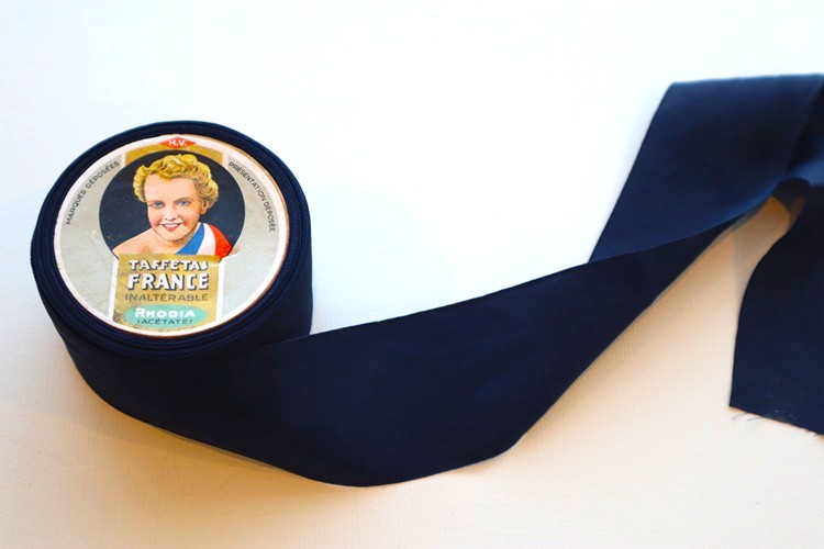 フランス・パリのヴィンテージディーラーから届きました。 フランス製ヴィンテージリボン タフタ ネイビー アセテート