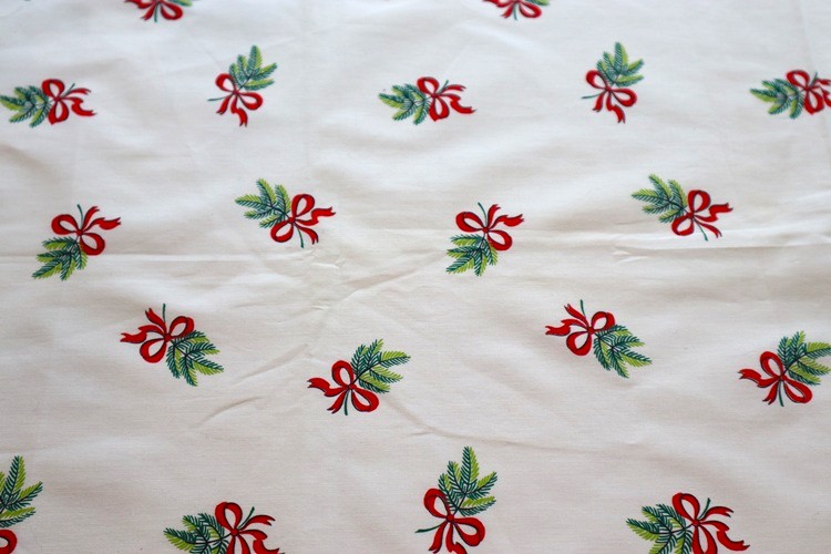 アメリカ製 ヴィンテージファブリック ヒイラギとリボン