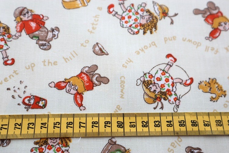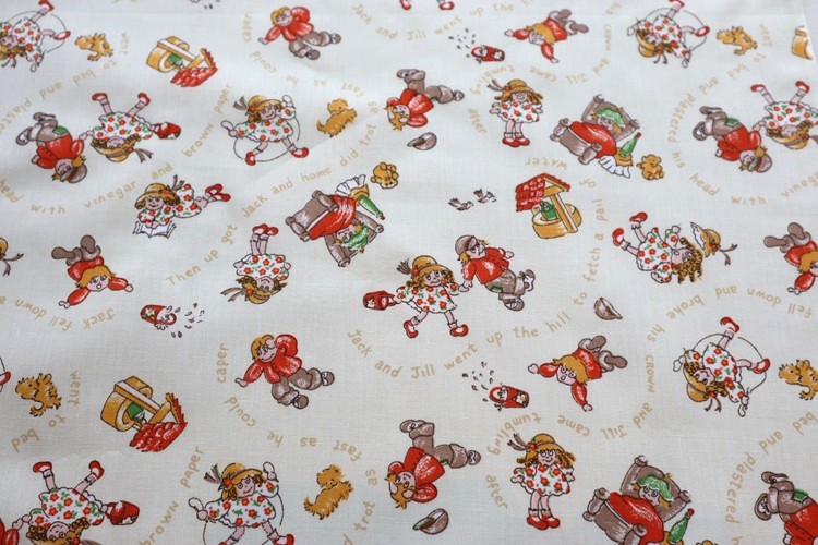 アメリカ・ニューヨークのヴィンテージディーラーから届きました。 アメリカ製 ヴィンテージファブリック ナーサリーライム Jack and Jill