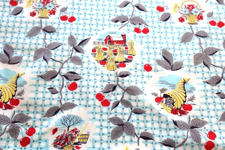 アメリカ製 ヴィンテージフィードサック ファーム&チェリー