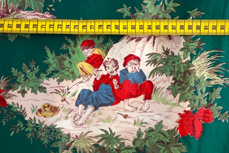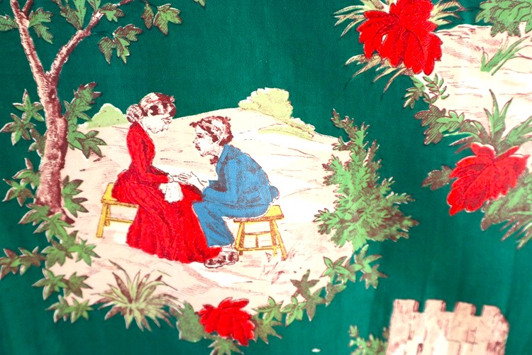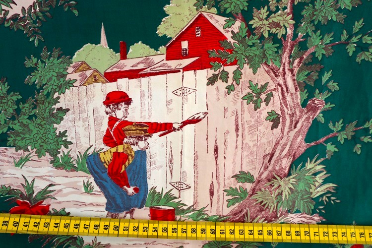アメリカのヴィンテージディーラーから届きました。 アメリカ製ヴィンテージファブリック Waverly 綿100% トム・ソーヤの冒険で知られる作家 Mark Twain マーク・トウェイン著書の挿絵をプリントした生地です。