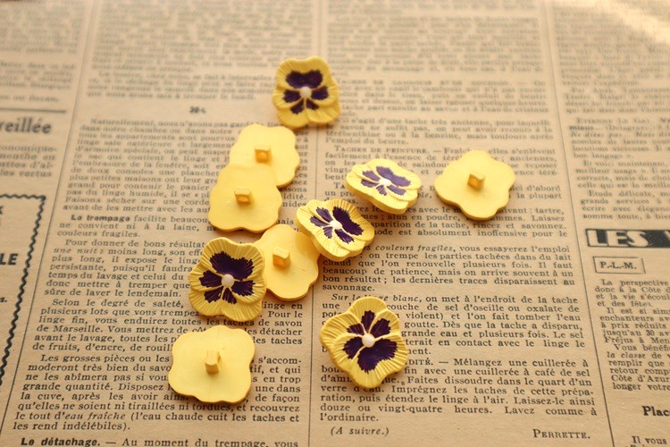 フランス製ヴィンテージボタン パンジーイエロー SALE!