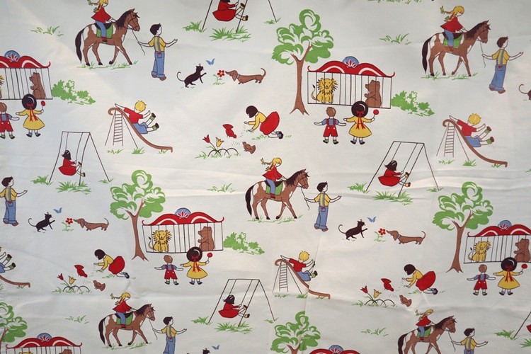 アメリカ製 ヴィンテージ ファブリック 子供と公園